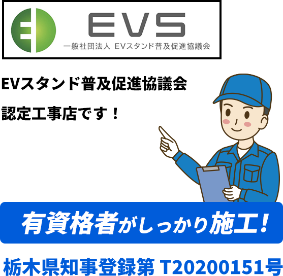 電気工事有資格者による安心・確実な施工をご提供します。EVスタンド普及促進協議会の認定工事店です。